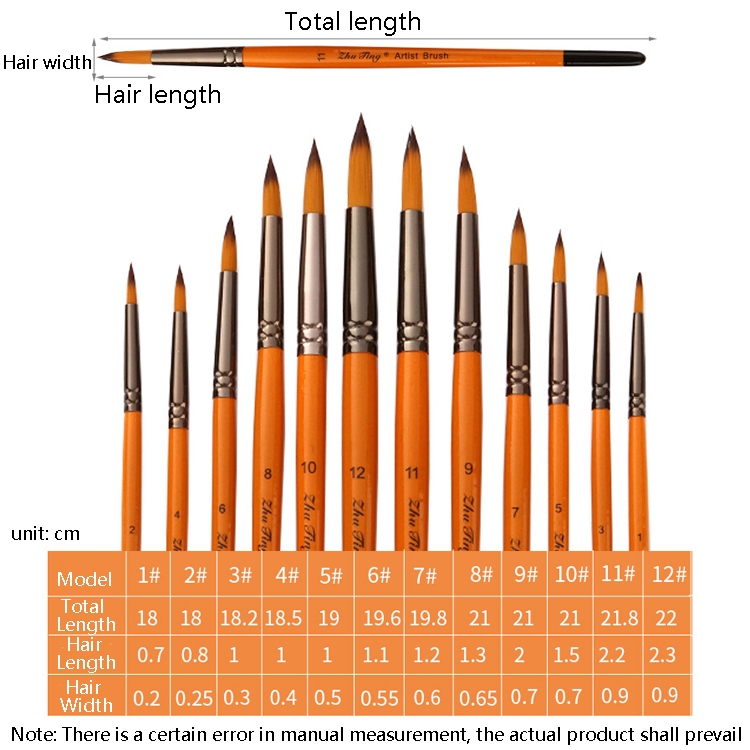 ZHU TING 12 PCS / Set Short Wooden Pole Nylon Hair Watercolor Hook Line Brush Nail Oil Painting Stroke Brush