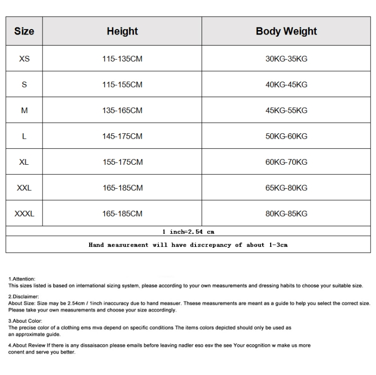 9. Weight: XS-140g/S-150g/M-160g/L-170g/XL-180g/XXL-190g/XXXL-200g