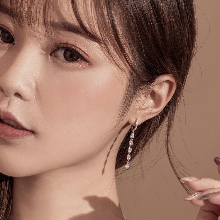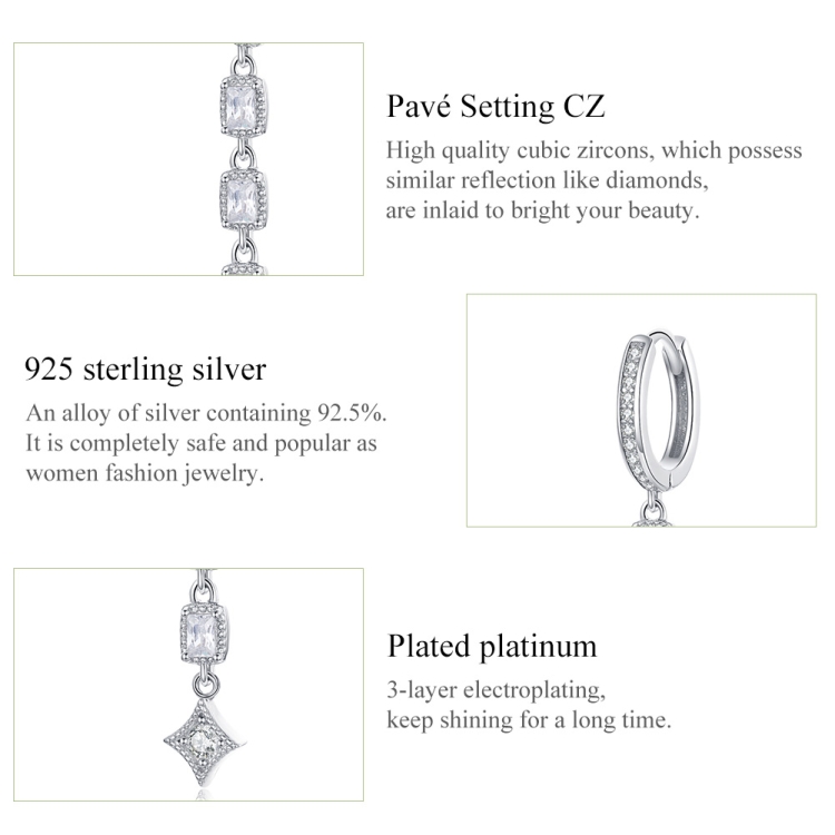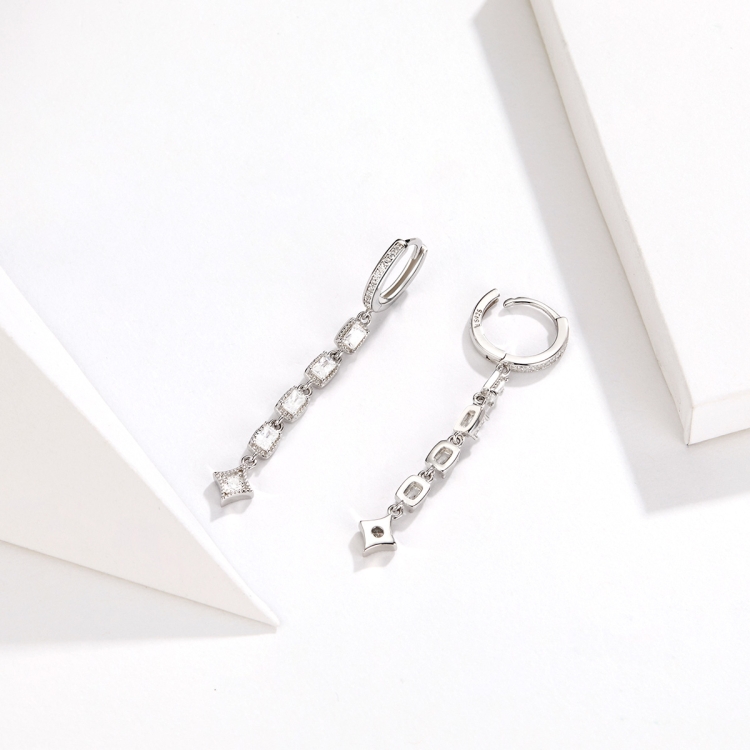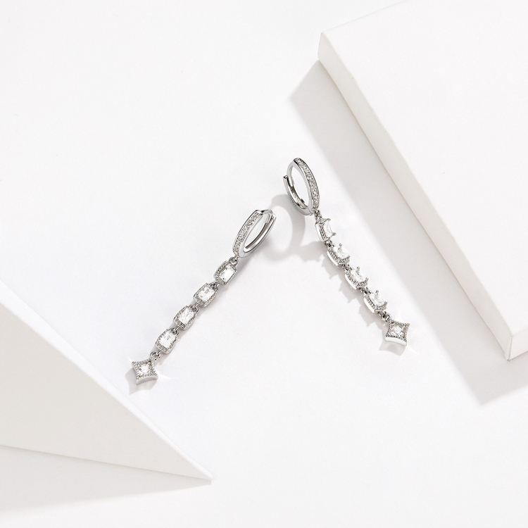 Zircon Earrings Long Sterling Silver S925 Platinum Plated Earrings