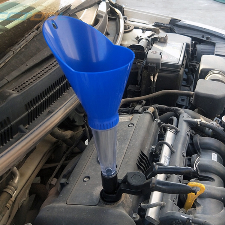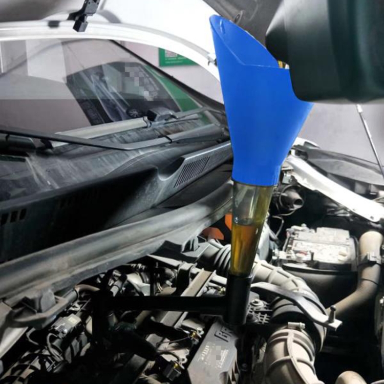 2. This Universal Engine Oil Funnel attaches directly to the oil fill port in place of the cap, avoiding messy spills caused by hidden baffles or wobbly funnels