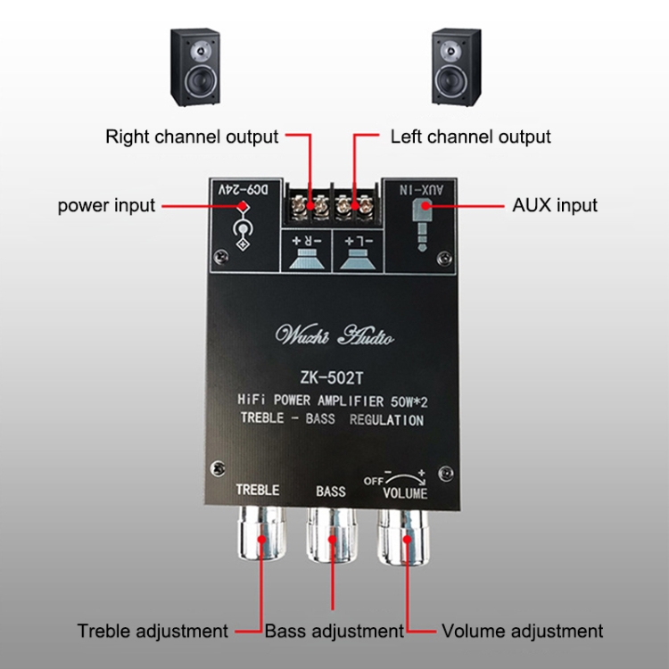 ZK-502T Bluetooth 5.0 50W x 2 Wireless TPA3116D2 Stereo HiFi Class D Amplifier Board Stereo Audio Amp Amplificador